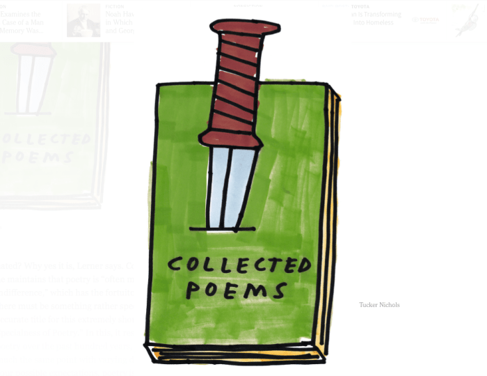 If you’re a poet, it’s easy to spend a lot of time worrying about how people feel about poetry. It’s also easy to dismiss how people feel because if you were to consider the blithe indifference with which most audiences actually regard poets and their poems, it would be depressing — and not depressing in … Continue reading Do People Hate Poetry? According to Ben Lerner, Yes (via NY Times)